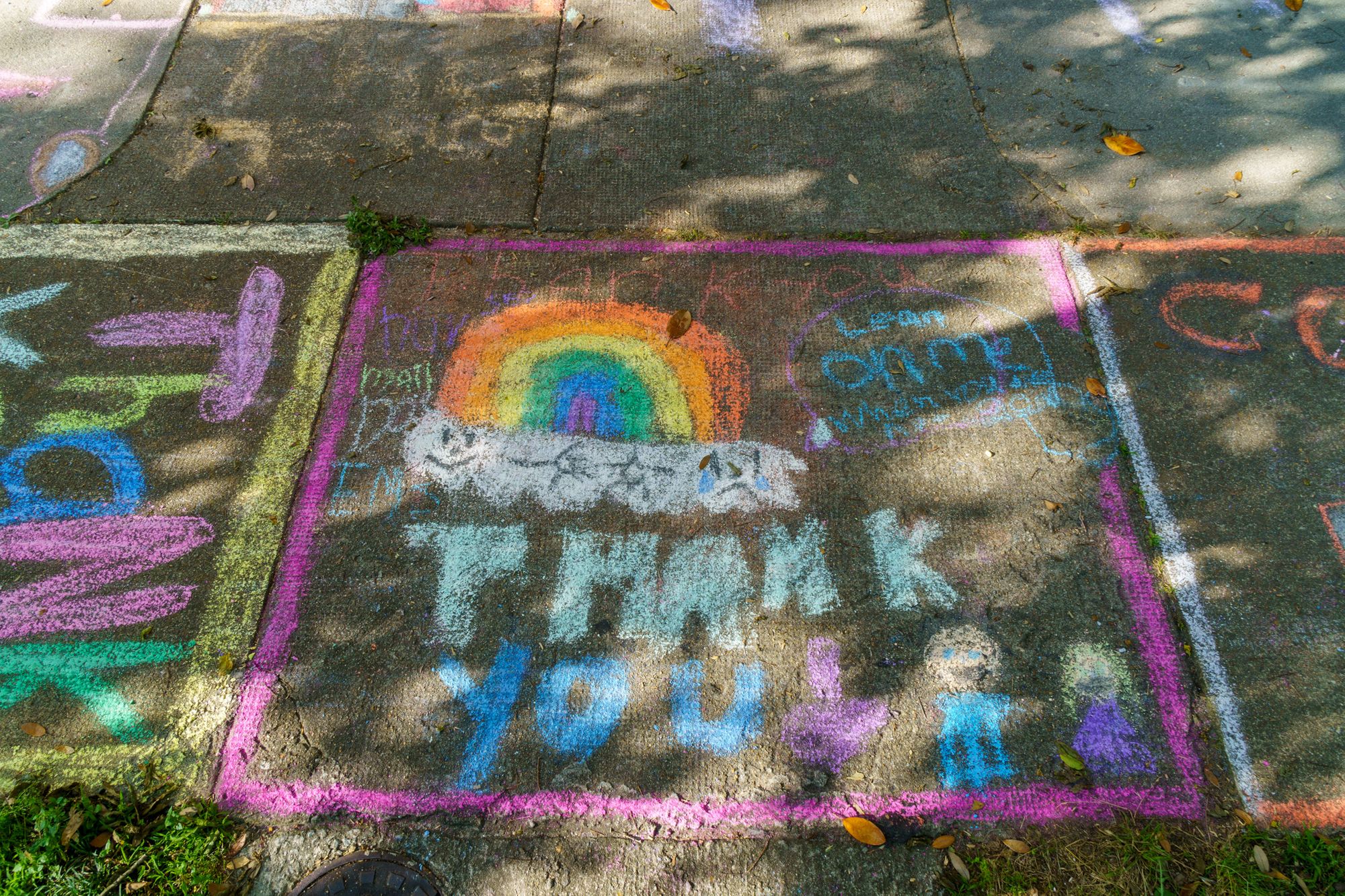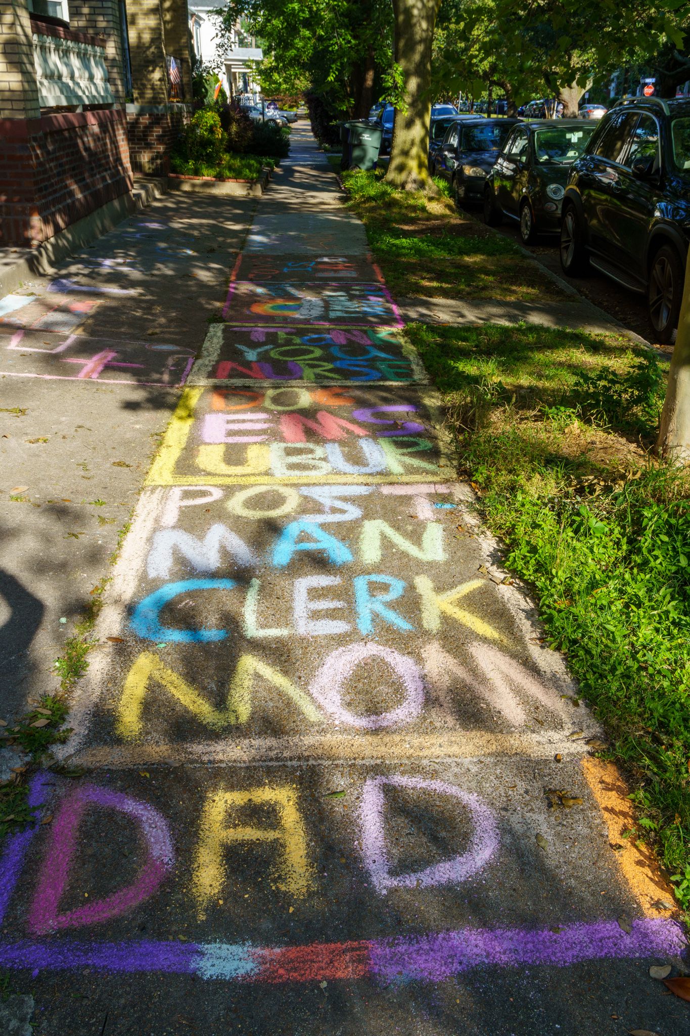 In any event, I also chose to take some of these photographs because they — particularly with the chalk drawings and homemade signs — reflected and captured a mood. And of course, the chalk drawings were literally of limited lifespan: here today, gone tomorrow, should the rains come. But some of the drawings and signs, as you will have seen, demonstrated support for Dr. Fauci and healthcare workers, and as I captured those images, I reflected on how insane and remarkable it was that a public servant such as him working in healthcare could ever have become not only controversial, but the subject of death threats and other such atrocious conduct. Having said that, as it would turn out, that would constitute only a small bit of some of the toxic discourse that ran rampant in 2020.