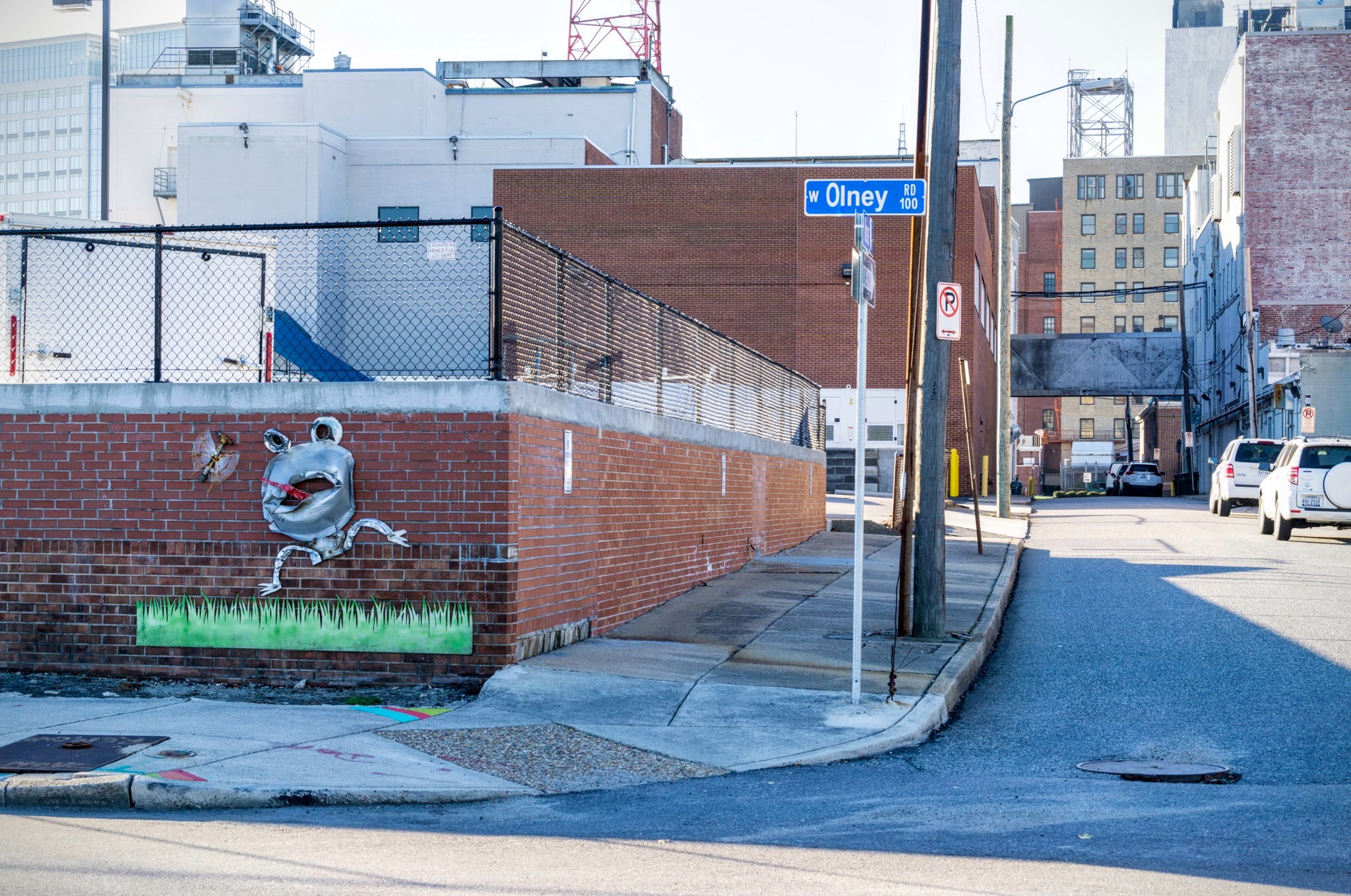 Across the street from the place at which I was called a faggot on Saturday night, there’s a whimsical, wall-mounted sculpture by the wonderful Sam Hundley, who works primarily with metal, largely using recycled and found objects. This one depicts a frog. Seeing it in the context of this instance, I’m reminded of a plaque that used to hang in the home of a family member. It had an image of a frog and read, “You would be happy, too, if you could eat what bugs you.”